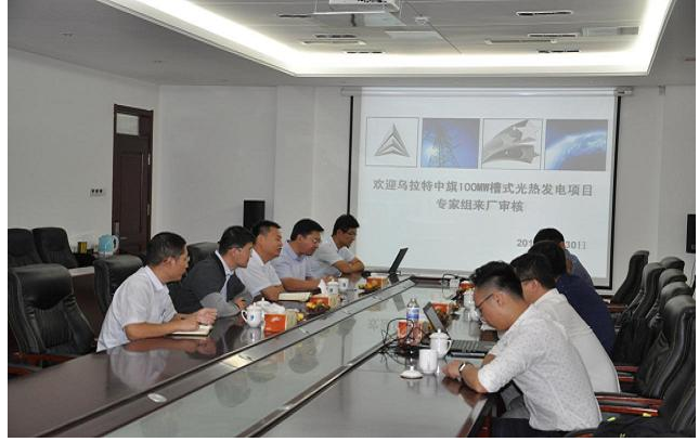 2018年10月1日,烏拉特中旗100mw槽式光熱發(fā)電項(xiàng)目業(yè)主方中船重工杜總監(jiān)及EPC承包方龍騰光熱俞總一行五人來(lái)我司進(jìn)行項(xiàng)目現(xiàn)場(chǎng)審核。